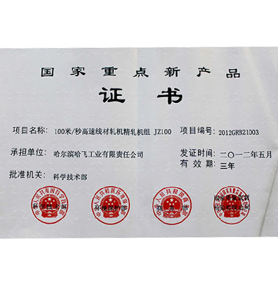 國家重點新產品證書